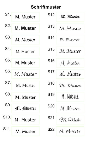 Schriftmuster und Materialmuster finden sie in unserer Bildergalerie.